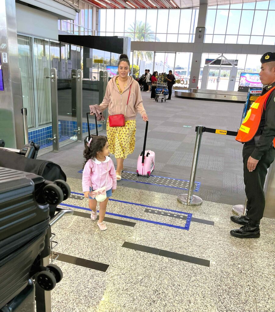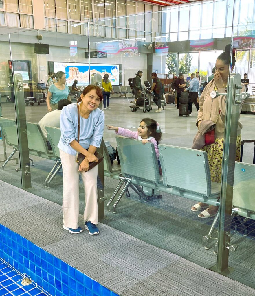 Op 3 januari gingen wij Charlotte, Pam en Victoria ophalen bij het vliegveld in Nan. Phrae heeft ook een vliegveld maar dat wordt sinds de Coronatijd niet meer gebruikt. Nan airport is het dichtste bij Home Koppert, twee en een half uur rijden. Door de bergen. Victoria was heel verrast toen ze oma ineens aan de andere kant van de glazen wand zag staan.