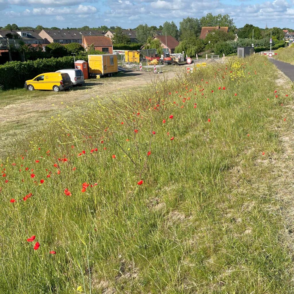 En aan de landzijde van de dijk stonden ineens de klaprozen in bloei. Ook een mooi gezicht.
