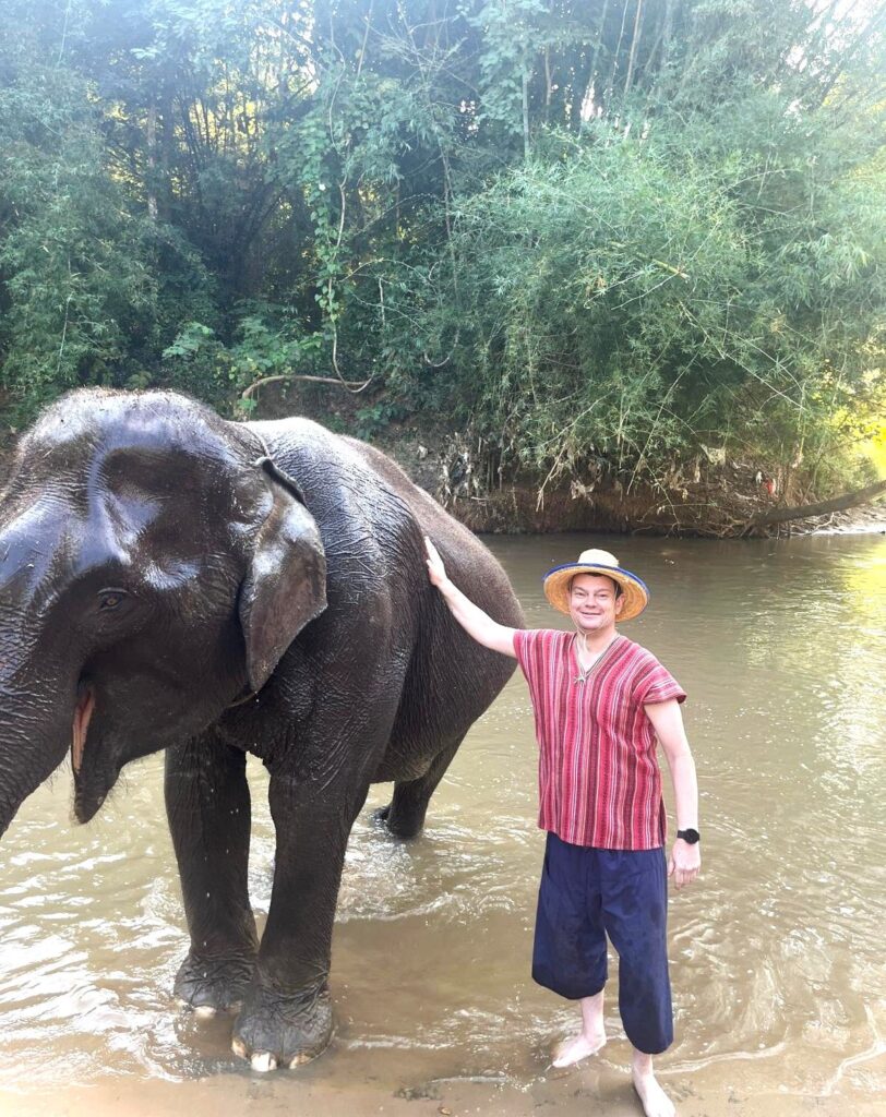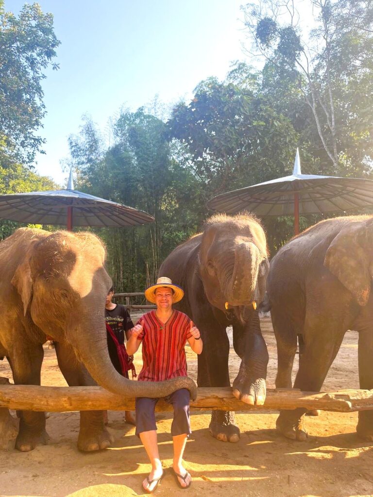 Terug in Chiang Mai is Hielke nog naar een olifantenpark geweest in Mae Rim. Daar heeft die zich nat laten spuiten door een olifant. Hierbij de video en een paar foto’s die ik kreeg toegezonden.