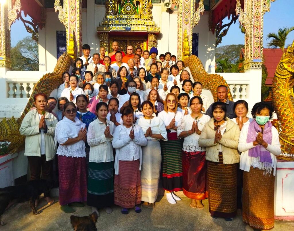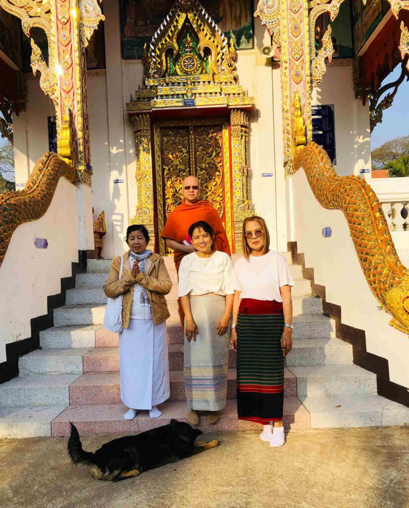 Ik kreeg nog een paar foto’s toegestuurd van de groep die deze week op bezoek is geweest bij meerdere tempels. Het was een hele grote groep, die met de monniken op pad ging. De monniken uiteraard in een eigen auto, want samen met vrouwen in één auto : dat kan niet.