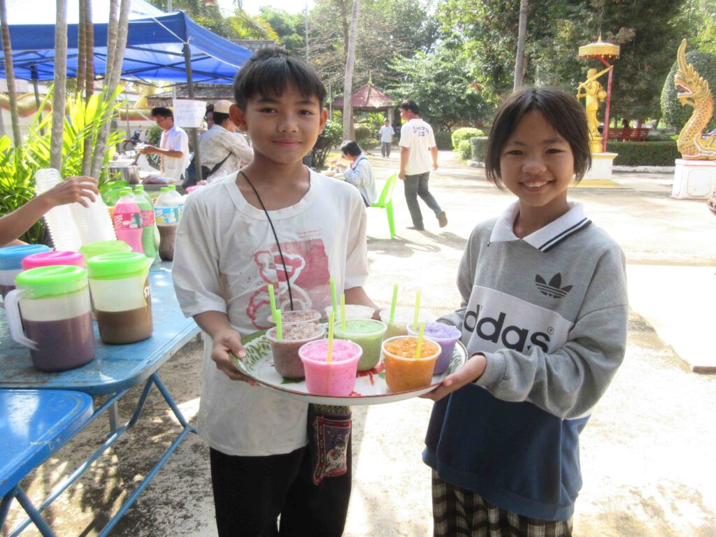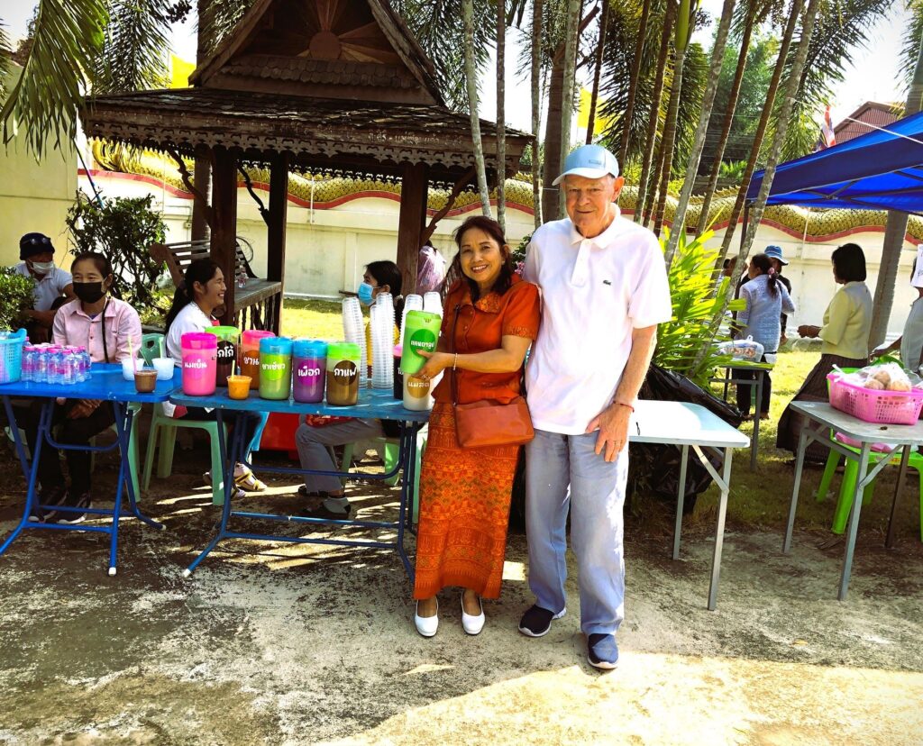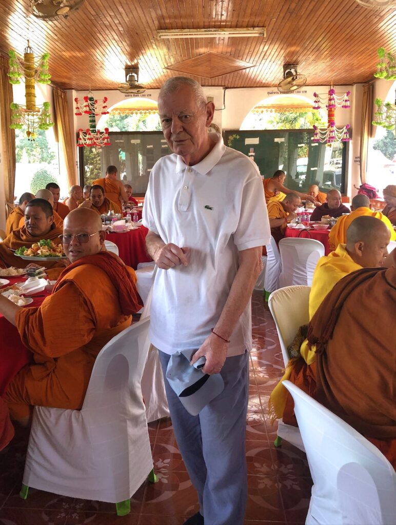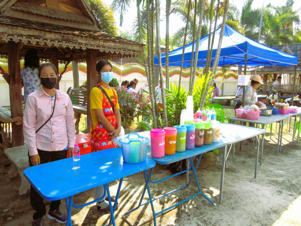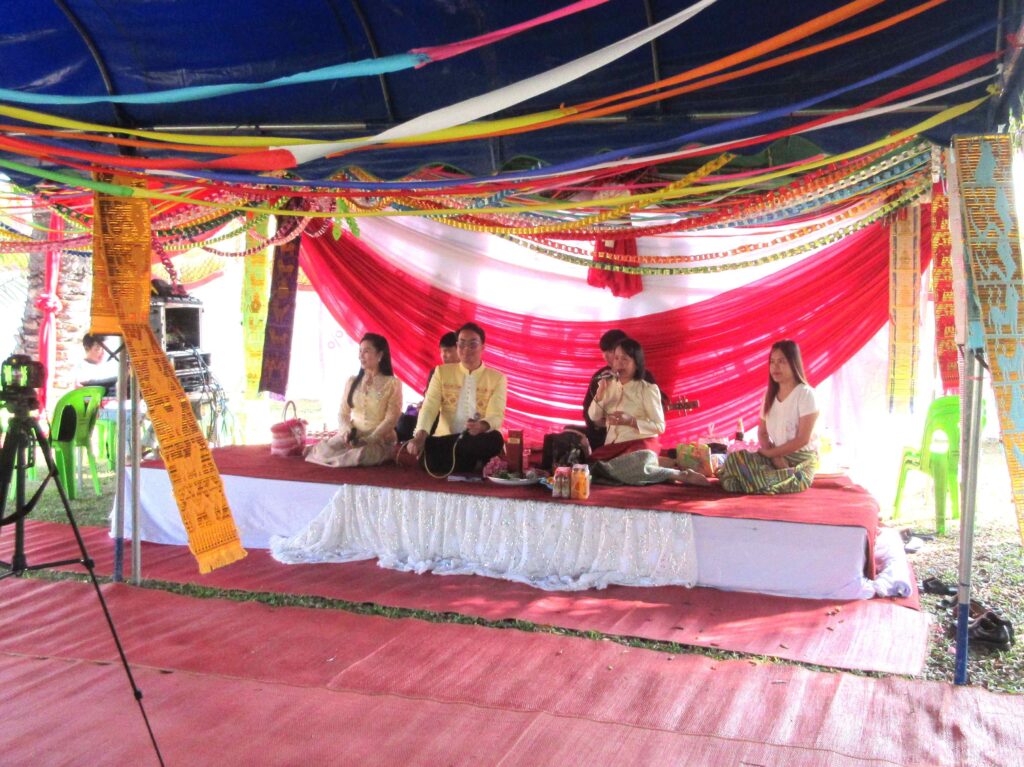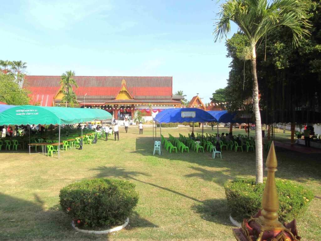Zondag was er feest in de tempel van Mae Yang Yuang. Het feit dat er een nieuwe monnik is aangesteld voor de tempel werd uitgebreid gevierd. Bovendien was hij ook nog eens jarig op die dag. Dus dubbel feest. Er waren heel veel monniken gekomen om dat te vieren. Wij hebben het feest uitgebreid ondersteund door te zorgen voor: het eten voor de monniken, het optreden van een traditionele muziek- en zanggroep en een etenstentje met gratis eten en drinken. Ook andere inwoners van het dorp hadden etenstentjes geïnstalleerd. Het was de hele dag feest tot 10 uur ‘s-avonds.