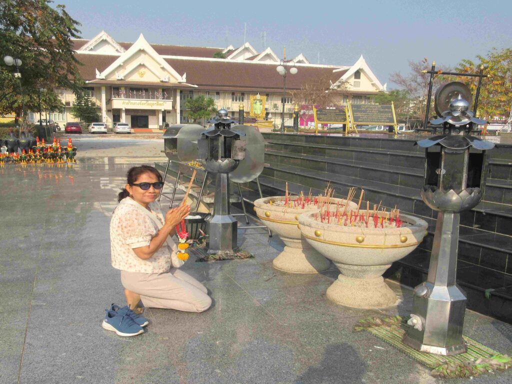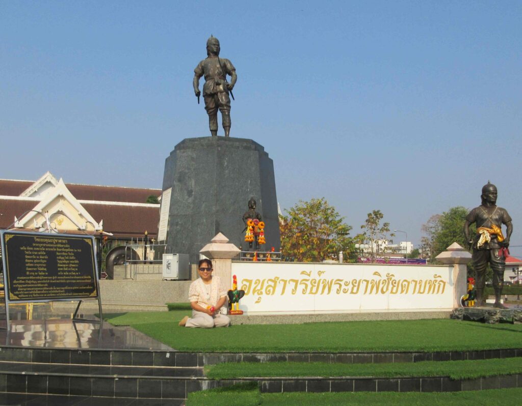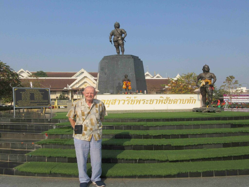 Op vrijdag weer vertrokken uit het hotel. Eerst nog even langs het standbeeld van een plaatselijke held gereden: Phraya Pichai. Was blijkbaar een dappere edelman in de 18e eeuw en een vechtersbaas. Vocht altijd met in elke hand een zwaard. Wordt ook de held van het gebroken zwaard genoemd. In een gevecht, waarbij het ene zwaard afbrak, bleef hij door gaan en versloeg met het andere zwaard al zijn tegenstanders.