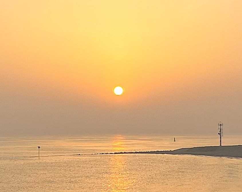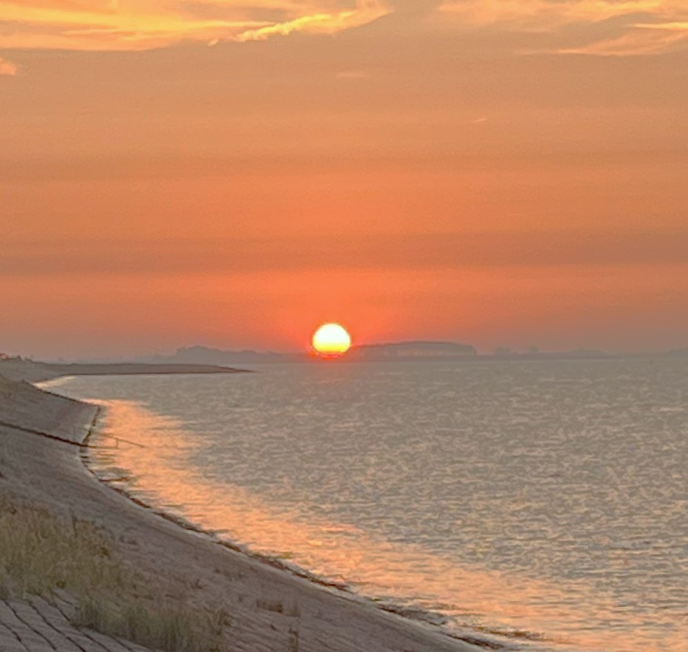 Afgelopen maandag was er een bijzondere zonsopkomst te zien in Wemeldinge. Nadat ik Soj had afgezet bij de bramen/frambozen plukkerij was ik net op tijd terug om een mooie foto te maken. Vanwege de mooie zonsopkomst zijn we donderdagavond ook naar zonsondergang gaan kijken. Het was een mooi gezicht, maar de spreuk “avondrood, water in de sloot” lijkt niet te kloppen. De lucht kleurde behoorlijk rood, maar de kans op regen is morgen 0% (volgens de buienradar).